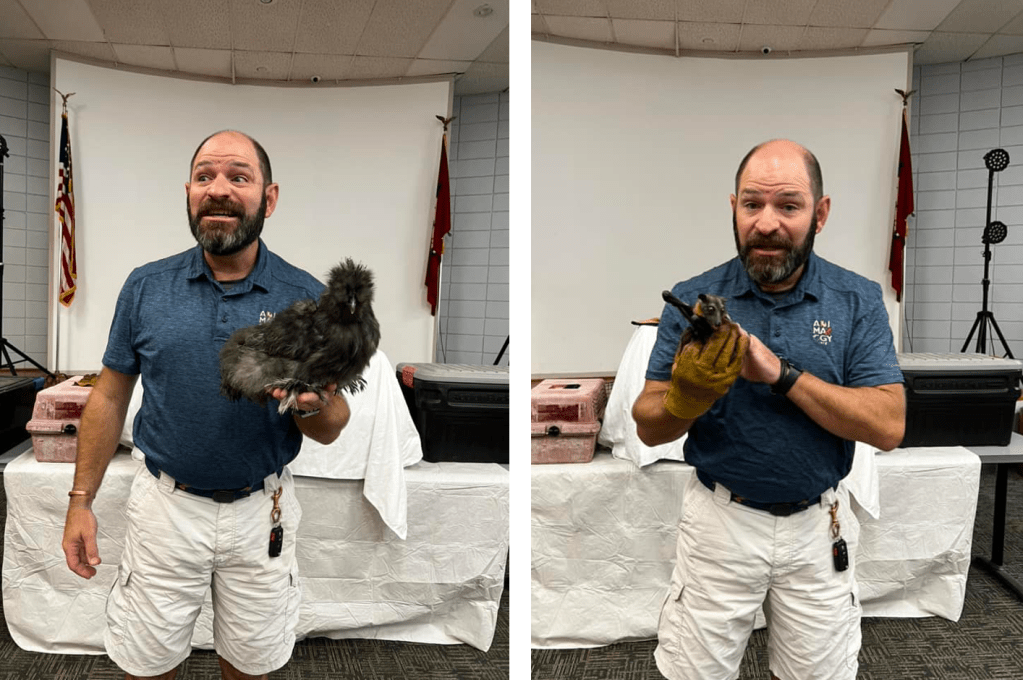 - This is one of the few non-wildlife animals we present. The Silkie Chicken has been helping humanity for thousands of years, first as a meat option, and secondly as a surrogate. Today they can be found living their best life as therapy animals and in providing homegrown free range eggs.
